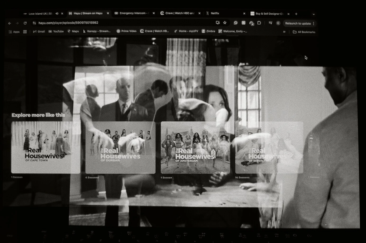 Screens may have an inverse meaning, or perhaps, because of how little meaning they seem to hold, they create a full circle, leading to even more meaning than intended. Over a few weeks, I captured images of my laptop and phone, documenting what inspires me: my favourite films, Persona and The Piano Teacher, as well as my online shopping habits and lyrics I’ve attached myself to. The idea was to build on the work of others. What I see daily and layer it, creating an intimate yet infinite interpretation of my online activities. No single piece of content holds more or less value than another. At its core, this is a demonstration of my search history and a reminder of its worth when taken seriously.