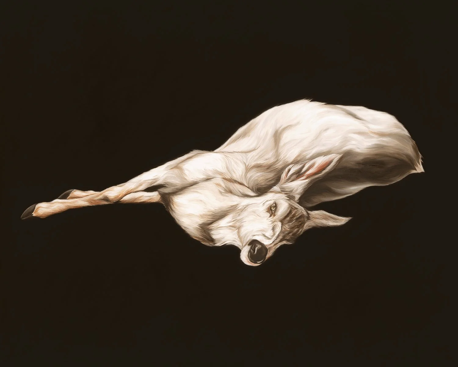 "I see myself in this dyeing deer." In The Rest Cure, I explore the Victorian tradition of confining women to rest as a treatment for melancholy, isolating them from intellectual and creative pursuits. The painting features a "dyeing deer," a metaphor for the fragile state imposed on these women. The muted colour palette and soft brushstrokes create a dreamlike, introspective atmosphere. Through this imagery, I draw a parallel between the deer and myself, reflecting on the shared experience of vulnerability and the quiet strength it demands to die with an audience.