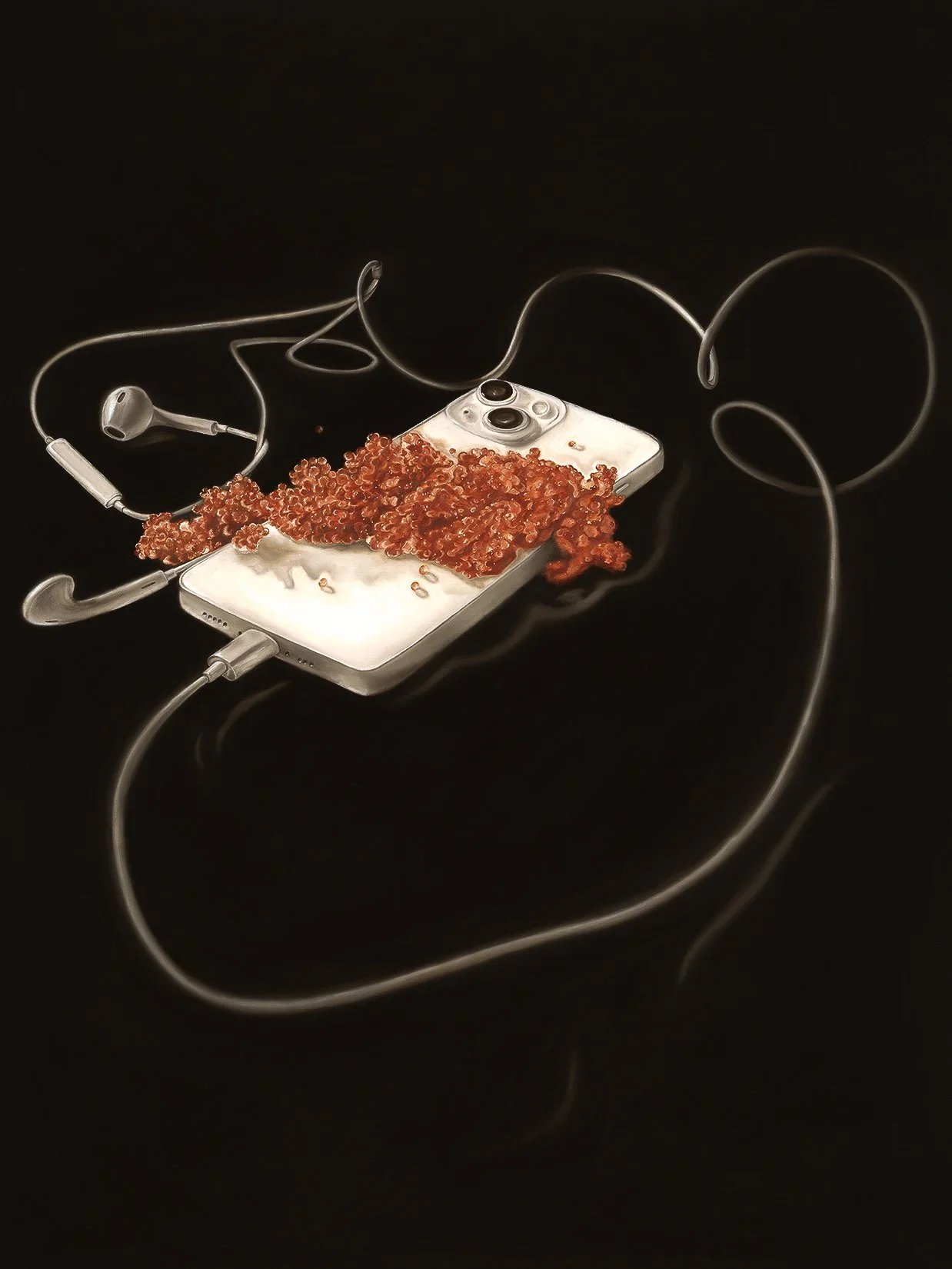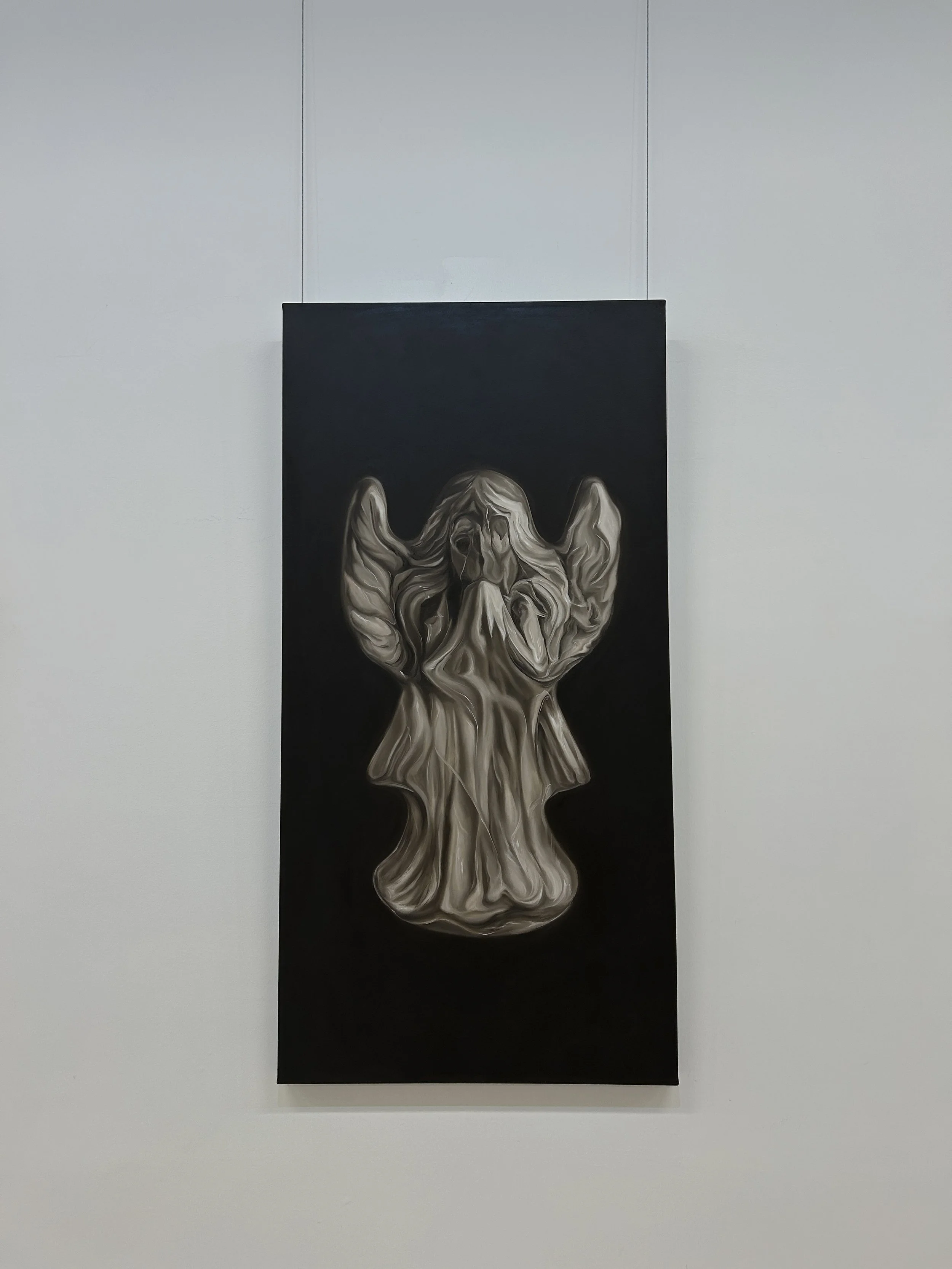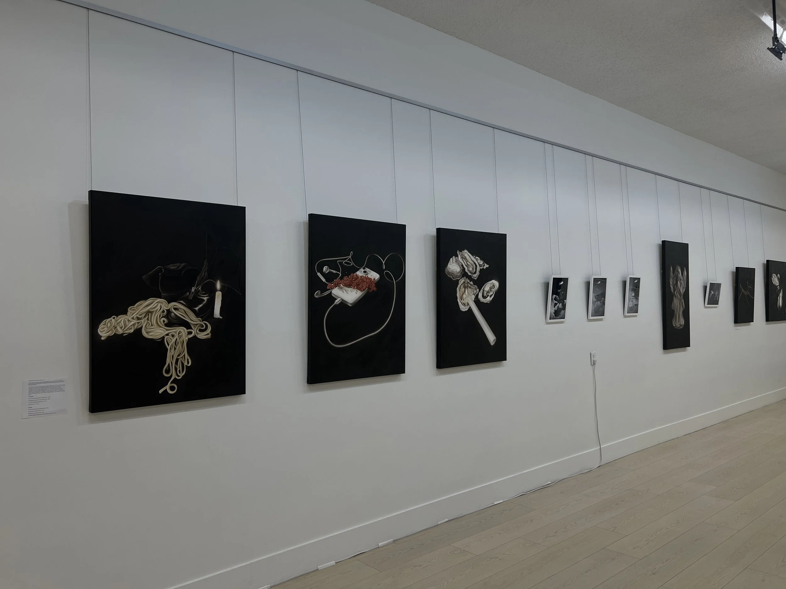 This exhibition consists of four film photographs and four oil paintings: With direct reference to their favourite movie, shoes, and wired headphones, Abigail and Emily Doyle aim to capture their things in a multitude of senses. Each piece demonstrates the idea of wanting and having, such as the non-tangible conversations heard through podcasts we enjoy, even when vapid and frivolous. Or the clothes we wear daily and cherish as though they're art pieces. Even the ideals we dream of, the futures we'll have. Without these simple things, we'd be completely lost. When we don't believe in a god, we turn to objects, desires, and our personas. Asking the question, what would we be without our things?